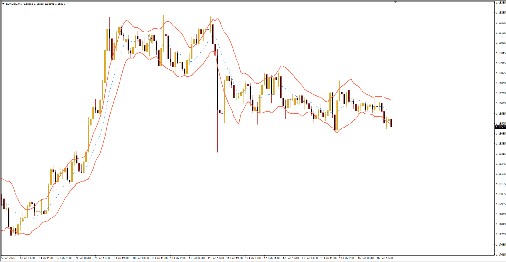 Price typically moves within these bands, oscillating between the upper and lower boundaries depending on market momentum and volatility.