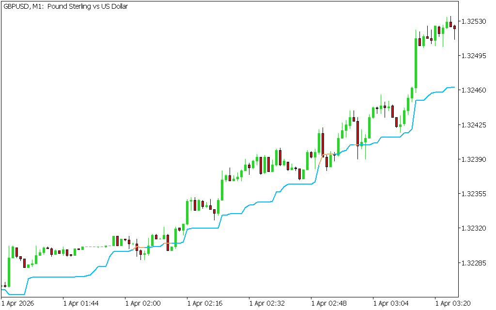 - Color-Coded Signals: The line changes color to reflect bullish or bearish conditions.