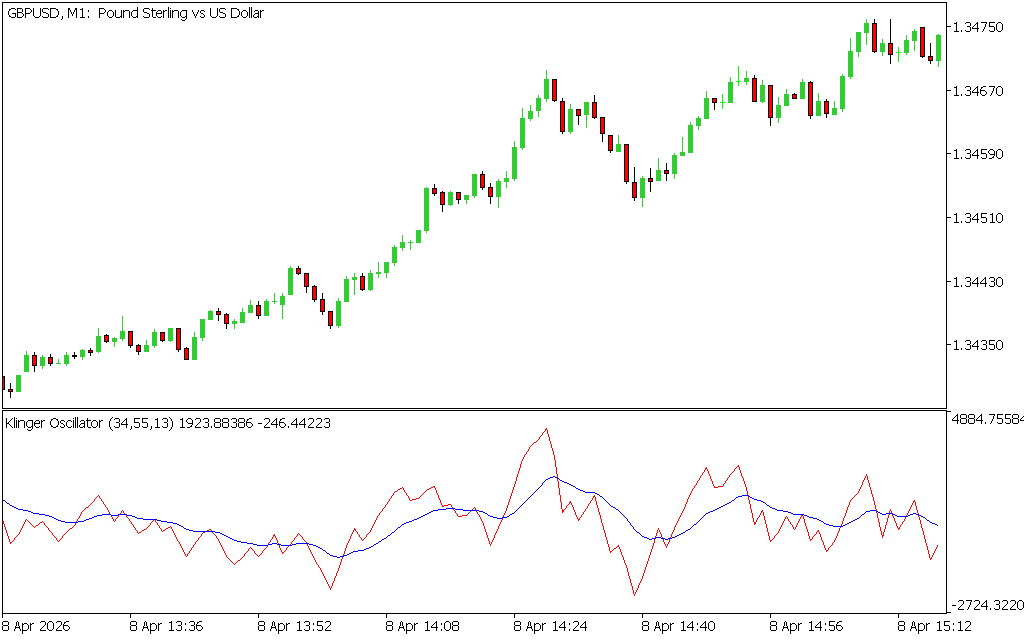 The Klinger Oscillator Indicator for MetaTrader 5 (MT5), also known as the Klinger Volume Oscillator, is a technical tool designed to measure the long-term trend of money flow. While it resembles the MACD visually, it operates differently by comparing price volume strength with market Trend Strength to generate buy and sell signals.