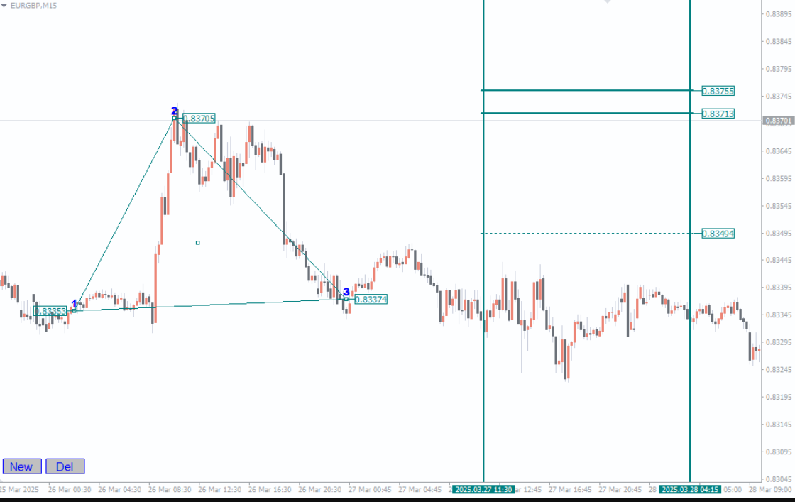 Once the structure meets required conditions, the indicator calculates price targets and time windows. - Entry Signals