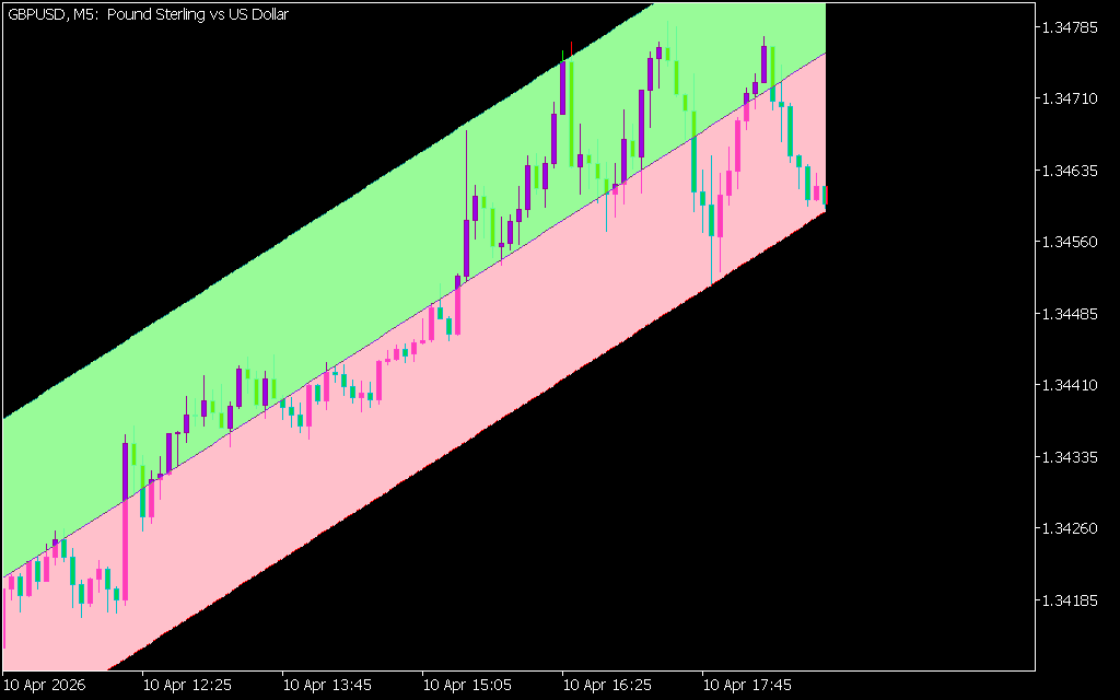 The channel adjusts dynamically as price evolves, helping traders identify whether the market is trending upward, downward, or moving sideways.