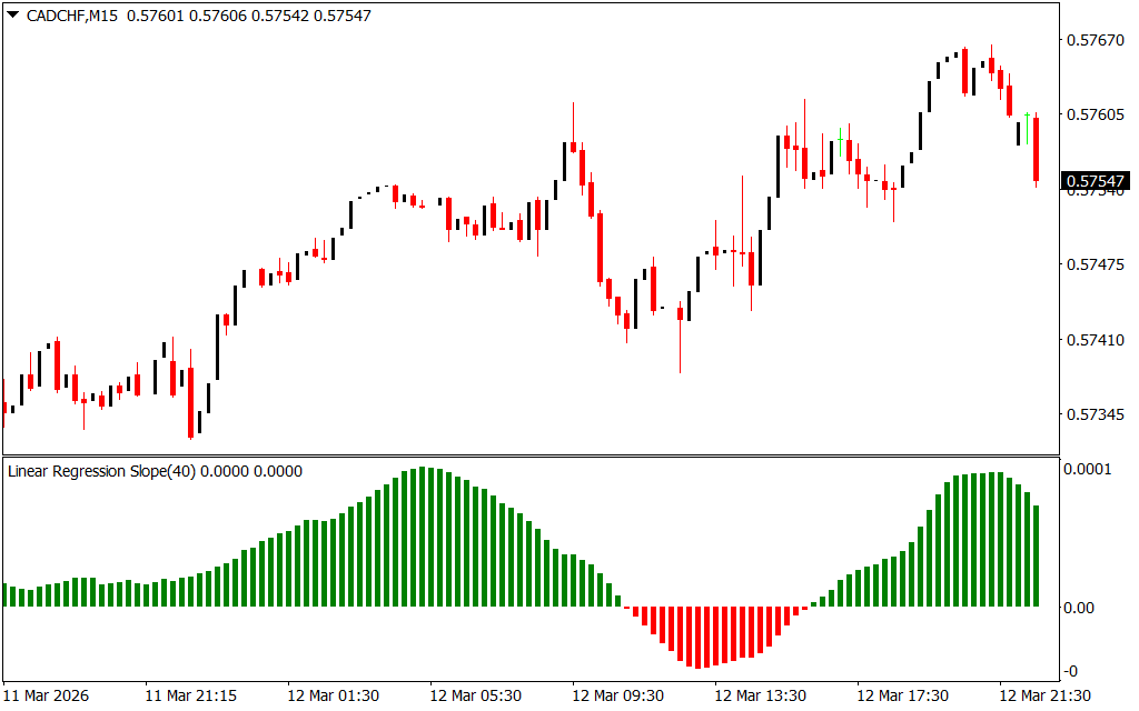 The Linear Regression Slope Indicator for MT4 is a technical analysis tool that calculates the slope of a linear regression line to determine market direction and momentum. Instead of drawing the regression line directly, the indicator plots histogram bars that show the strength and direction of the trend.