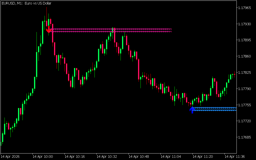 - Wavy horizontal lines → Confirmation zones after a trend shift