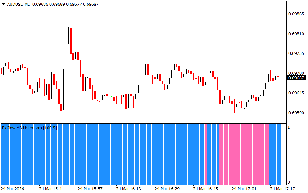 - Pink Bars → Bearish Trend (Fast MA below Slow MA)