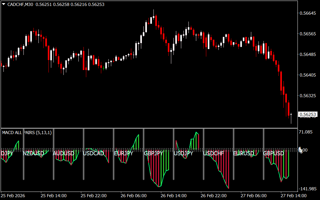 The MACD Different Pairs Indicator for MT4 is an advanced tool that extends the classic MACD indicator to monitor multiple currency pairs on a single chart. By analyzing the convergence and divergence of fast and slow moving averages, it helps traders identify strong trending pairs and potential trading opportunities.