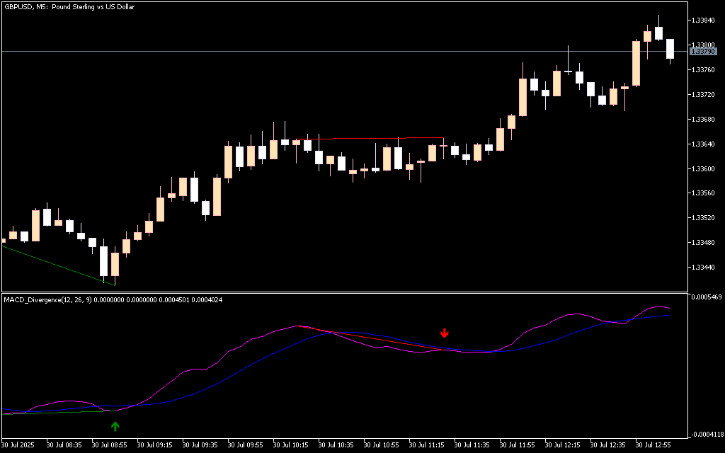 Divergence trading is one of the most effective methods to identify bullish and bearish trend reversals early in the market. The MACD Divergence Indicator for MT5 simplifies this process by automatically scanning the chart and alerting traders whenever a divergence occurs. The indicator also provides arrow-based BUY and SELL signals, making it ideal for both new and experienced traders.