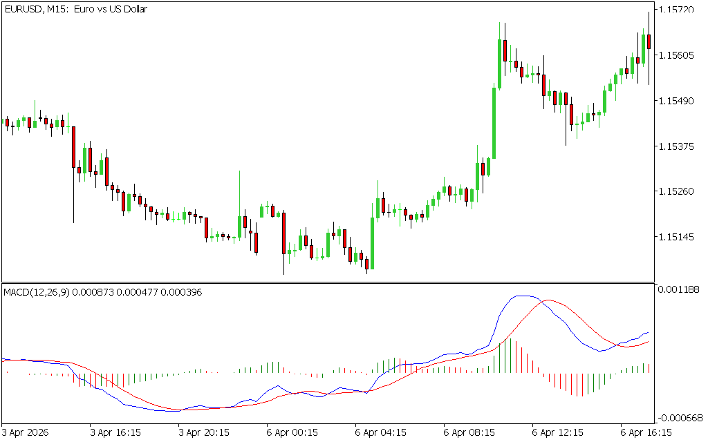 The histogram represents the difference between these averages, changing color to reflect market sentiment: