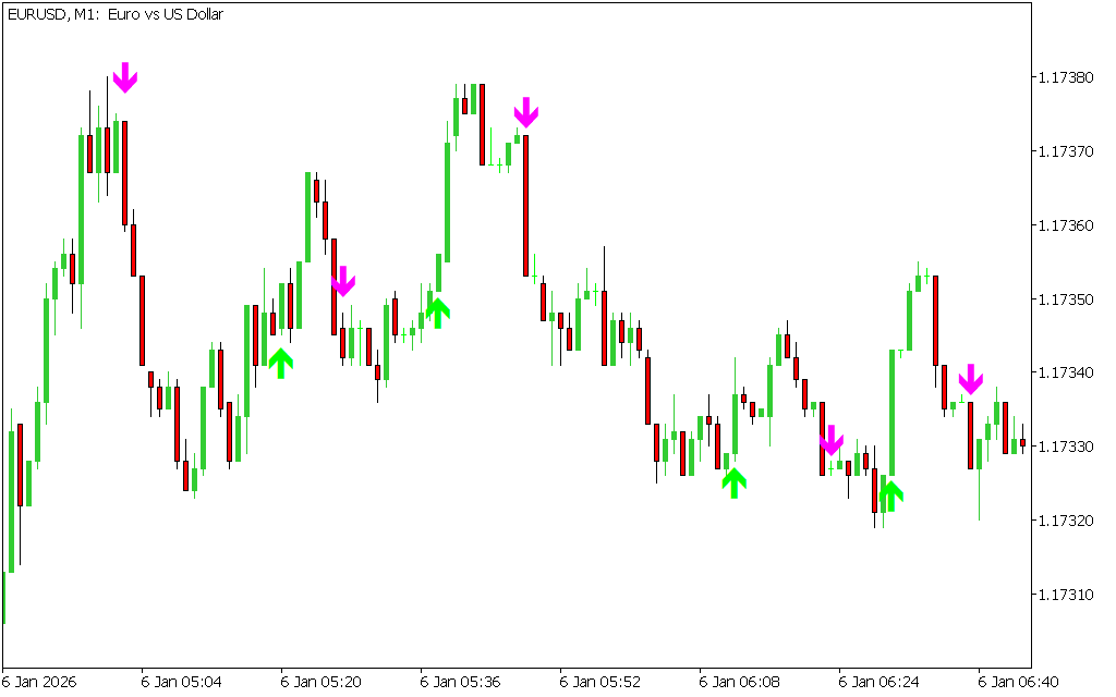 These arrows appear directly on the price chart, allowing traders to react quickly to changing market conditions.