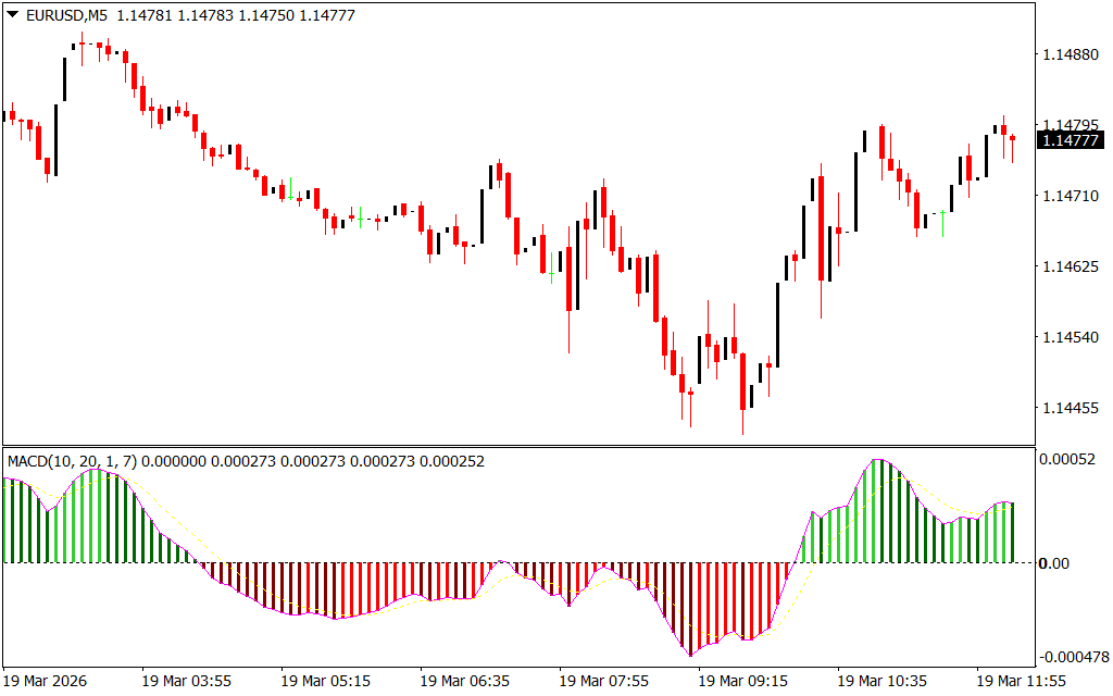 - Histogram Visualization: Displays market momentum with color-coded bars