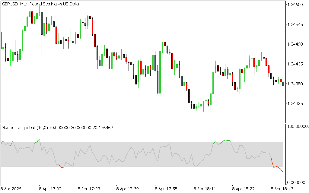 The Momentum Pinball Indicator for MetaTrader 5 (MT5) is a powerful oscillator that combines the Relative Strength Index (RSI) and Rate of Change (ROC) indicators. Inspired by the Impulse Pinball strategy from L. Raschke and L. Connors’ book Street Smarts: High Probability Short-Term Trading Strategies, this tool helps traders identify overbought and oversold conditions with momentum-based confirmation.