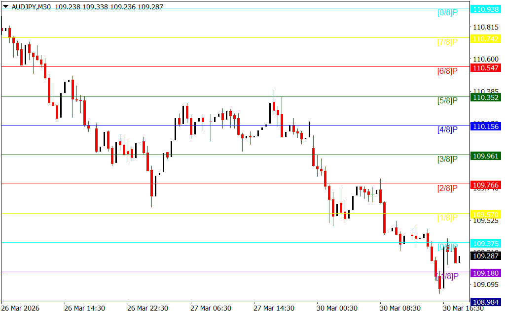 The indicator divides the chart into a structured range and plots key levels based on mathematical calculations. These levels act as psychological and technical zones where price is likely to react.