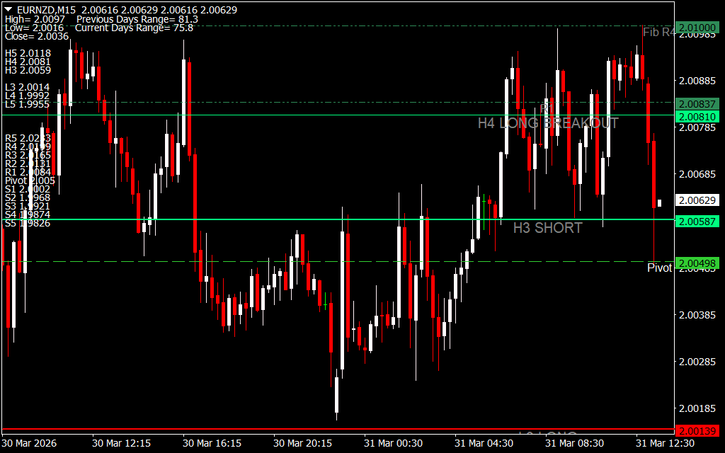 The indicator continuously updates pivot levels based on the previous day's price data. These levels act as decision zones where traders look for: