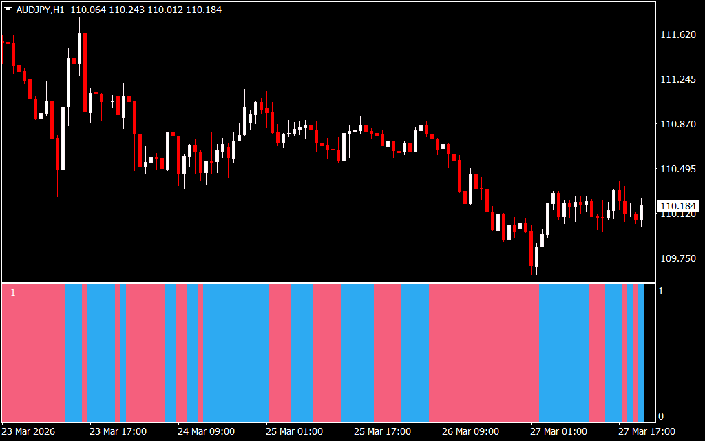 - Histogram Signals: Blue bars indicate bullish volume; red bars indicate bearish volume.
