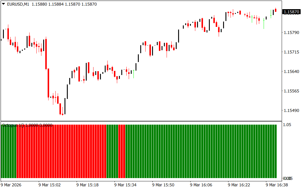 The Octopus 1 Indicator for MetaTrader is a custom technical tool designed to follow market trends and highlight potential trend reversals. It plots histogram bars that help traders visually identify bullish and bearish moves, making it a versatile tool for Scalping, intraday, and swing trading.