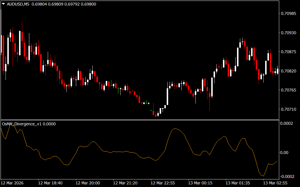 The OsMA shows the difference between the MACD histogram and its signal line. Divergences occur when highs or lows on the price chart differ from highs or lows on the OsMA chart. Divergences can be: