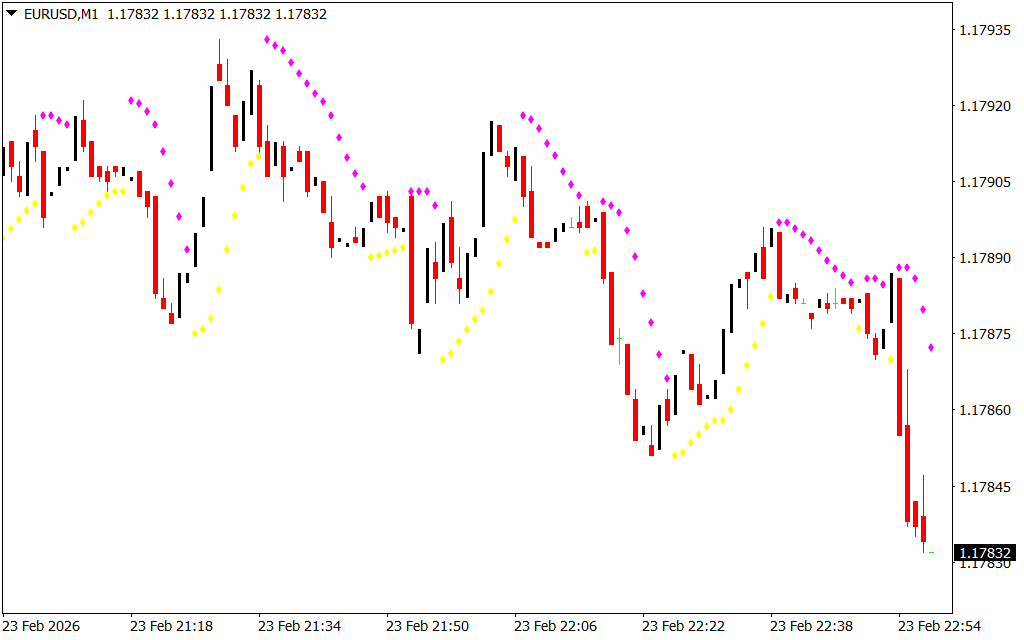 - Trend Direction Detection: Dots plotted above or below candles indicate market movement.