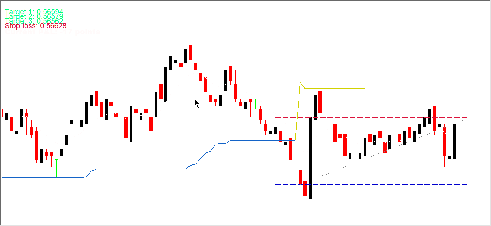 Take-profit targets appear visually on the chart, offering structured exit points