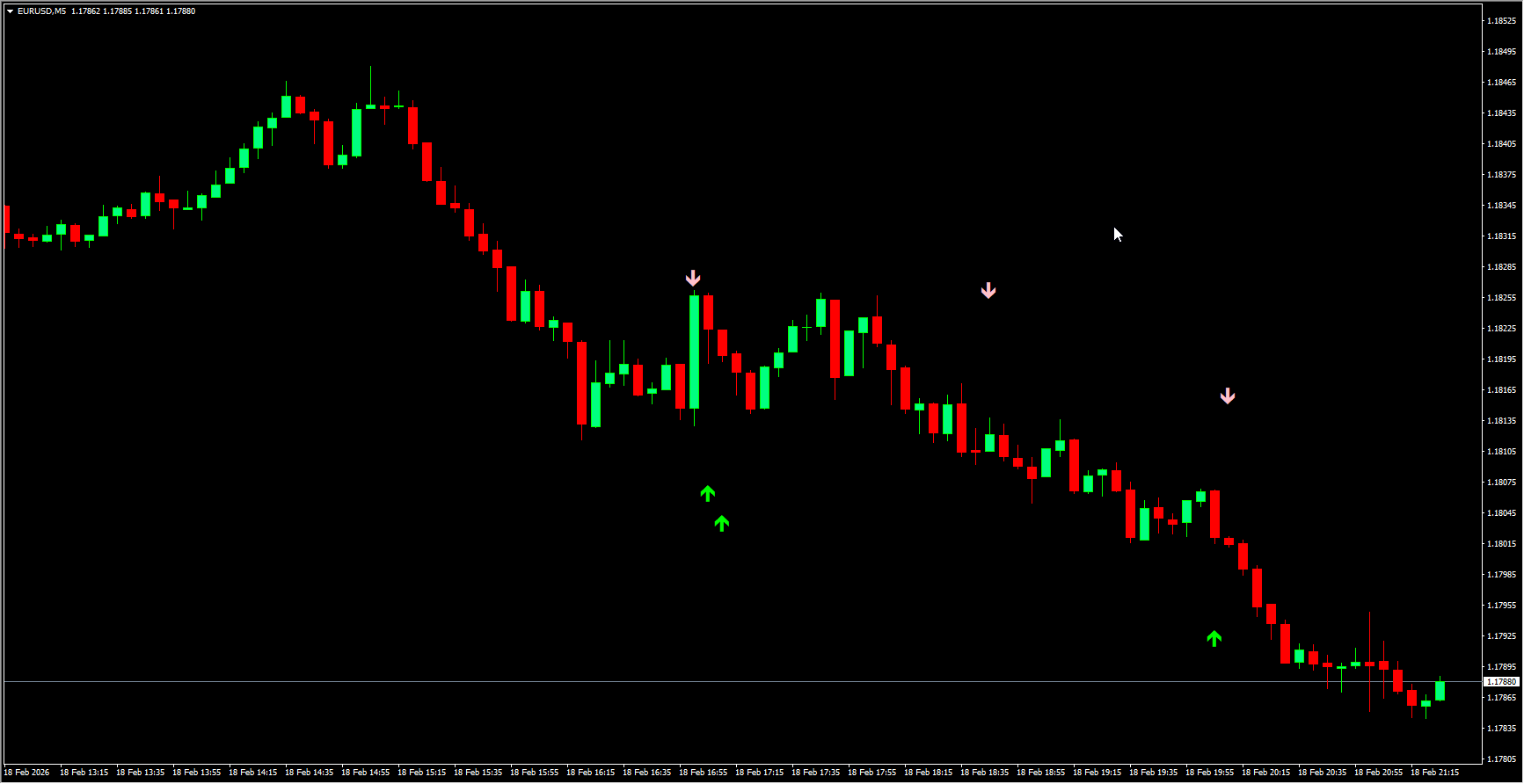 Signal Clarity: Generates lime arrows for buy signals and pink arrows for sell signals, making trade decisions straightforward.