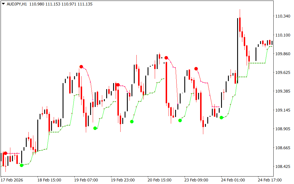 - Signal Dots – Indicate potential trend reversals