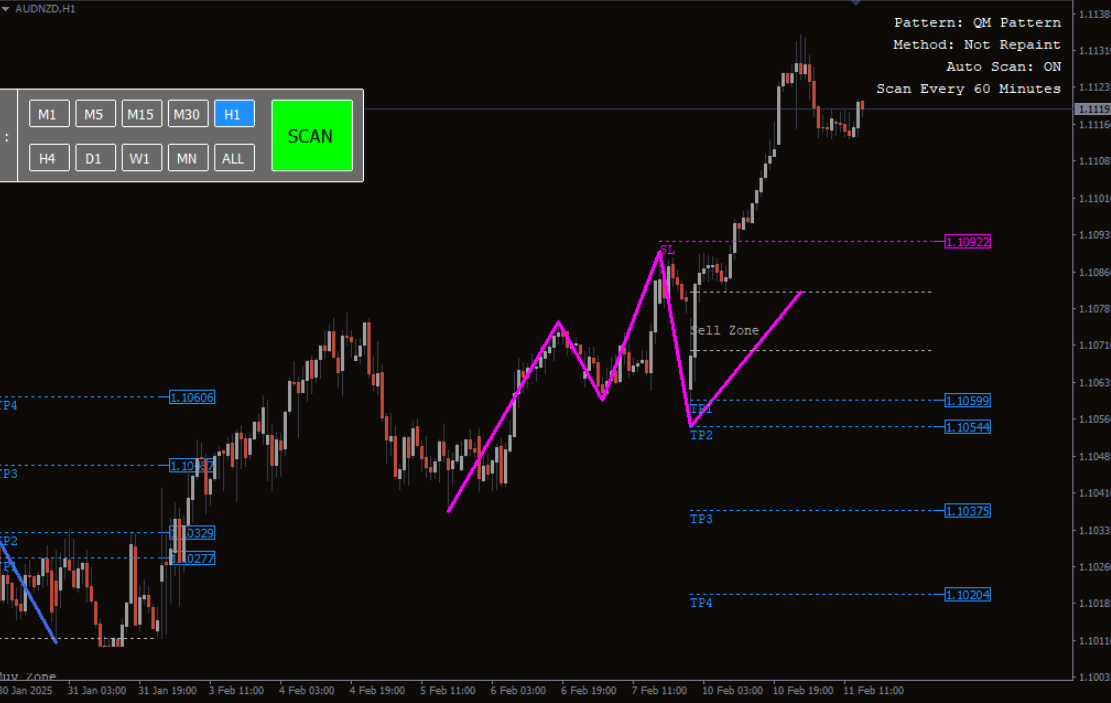 Never miss a trading opportunity with instant alerts when a QM pattern forms. - Multi-Timeframe Compatibility