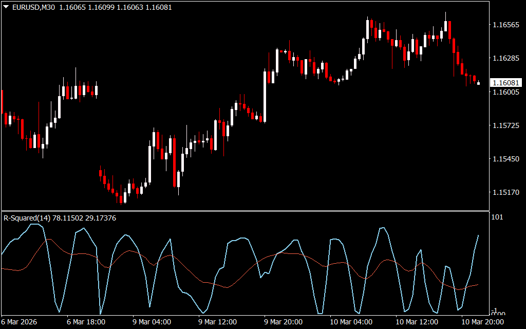 The R Squared Indicator is a momentum oscillator for MT4 that helps traders identify overbought and oversold market conditions. It belongs to the same family as the RSI and Stochastic Oscillators, making it a reliable tool for timing entries and exits.