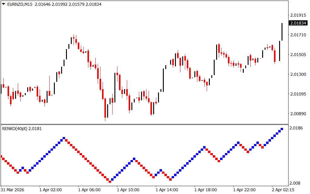 The Renko Charts Indicator for MT4 transforms standard price data into Renko bricks, providing a cleaner, noiseless view of the market. Unlike traditional candlestick or bar charts, Renko charts eliminate minor price fluctuations, highlighting trends, support, and resistance levels with precision. This makes them ideal for traders who want to follow trends or combine trend-based strategies with technical analysis.