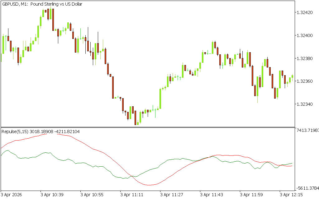 - Multi-Timeframe Utility: Plot Repulse(1), Repulse(5), and Repulse(15) together to observe short, medium, and long-term trends.