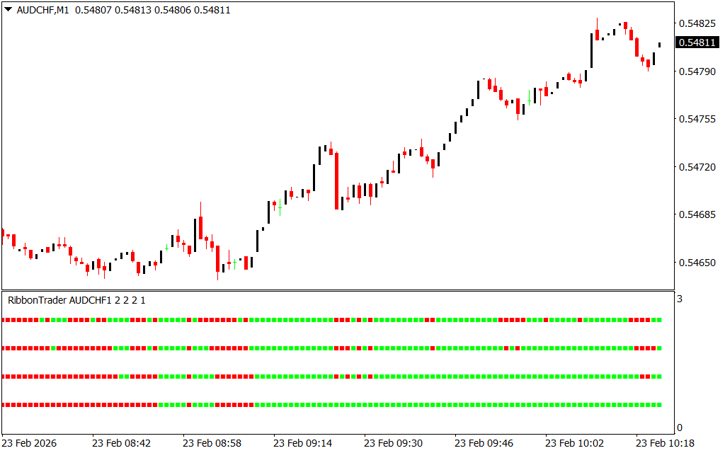- Green Ribbons – Indicate bullish conditions and potential buying opportunities.