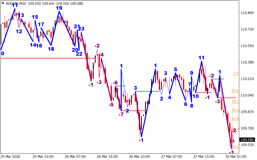 Displays structured bullish and bearish waves for clear trend identification. - Color-Coded Market Direction
