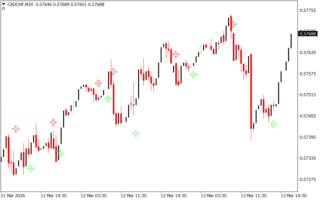 - Visual Signal Markers: Displays target-like symbols for BUY and SELL signals.