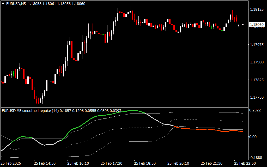 The Smoothed Repulse Indicator for MT4 is a versatile and reliable momentum tool that enhances trading strategies by clearly showing bullish and bearish pressure. Download it today to improve trend analysis, identify potential reversals and continuations, and elevate your forex trading performance.