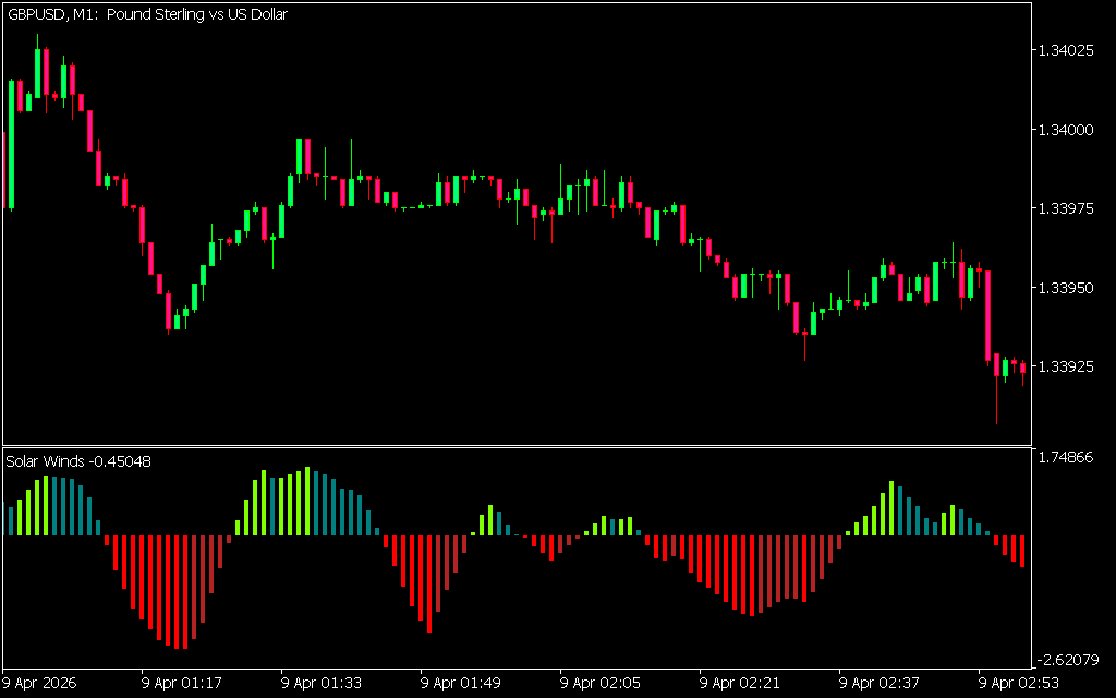 The Solar Wind Joy Histogram Indicator for MetaTrader 5 is a trend-following technical tool designed to detect potential Trend Reversal zones. Using an algorithm that analyzes past price action data, it plots histogram bars to show market direction and highlights possible changes in trend sentiment. This makes it a versatile tool for traders of all levels.