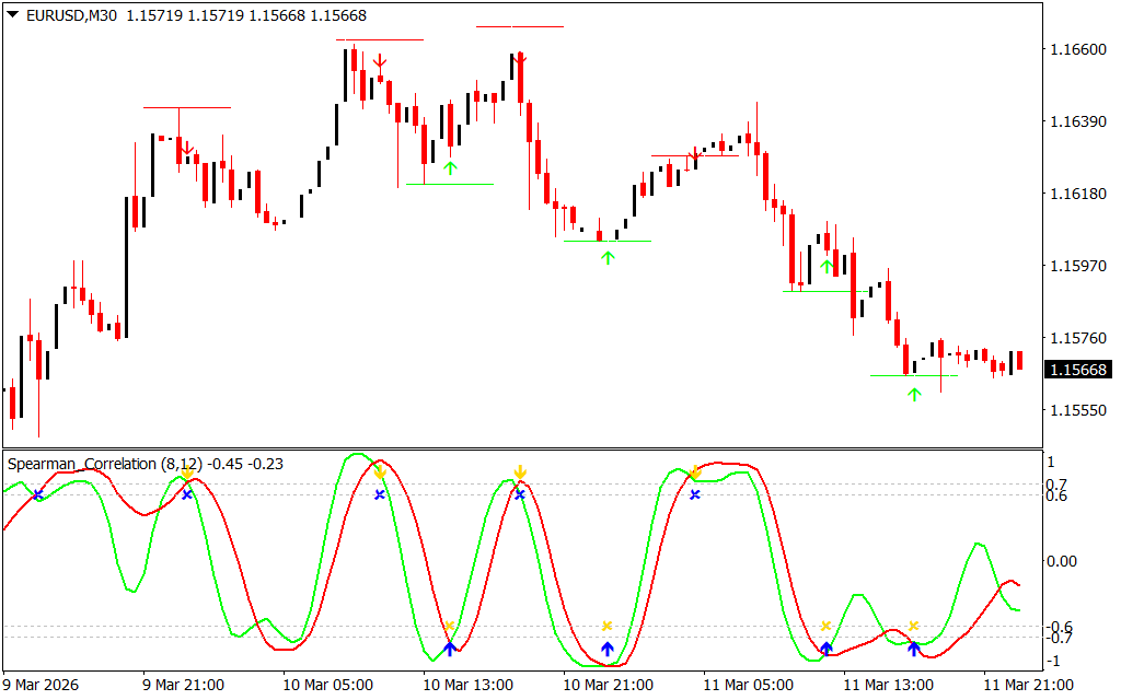 The Spearman Correlation Indicator for MT4 is a robust tool for trading trend reversals with greater accuracy. With its visual price bars, signal arrows, and almost lag-free performance, it helps traders spot profitable market entries in both bullish and bearish trends.