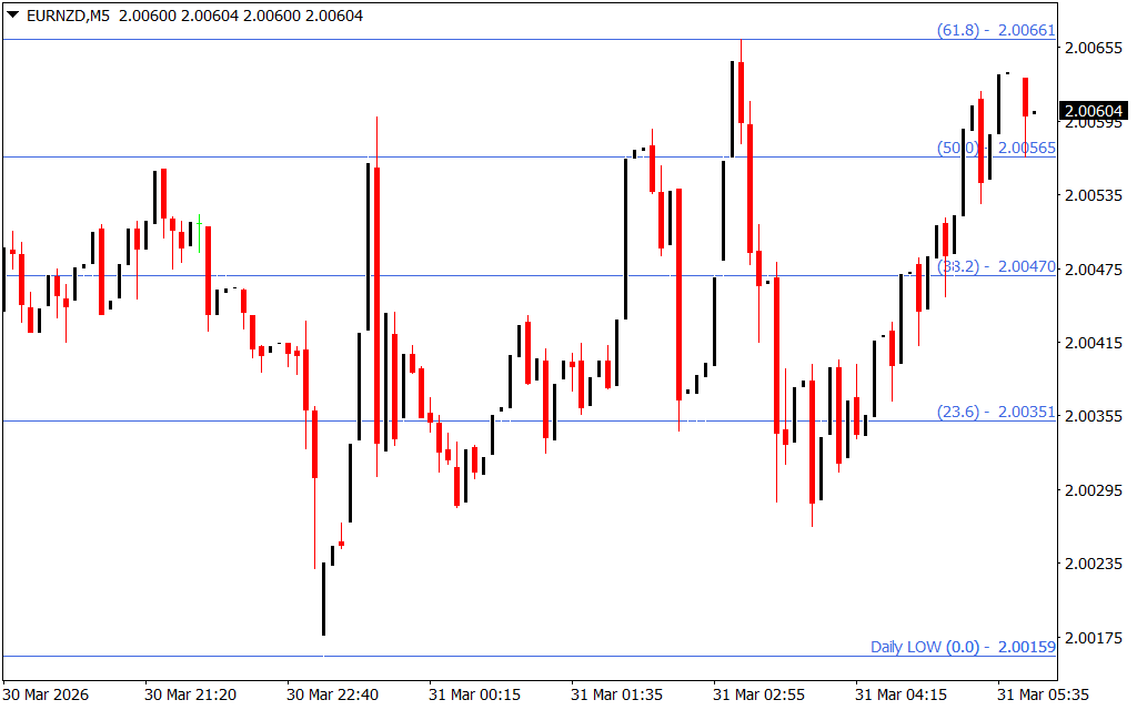 - Long Trades: Consider entering long when the price rejects a Fibo support level, such as a false break or bullish hammer.
