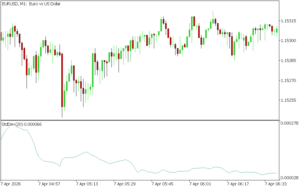The Standard Deviation Indicator for MT5 is a statistical tool that measures market volatility relative to the simple moving average. Acting like an oscillator, it helps traders identify overbought and oversold conditions, trend direction, and potential reversals. Its simplicity and adaptability make it suitable for all timeframes, with higher timeframes offering more reliable signals.
