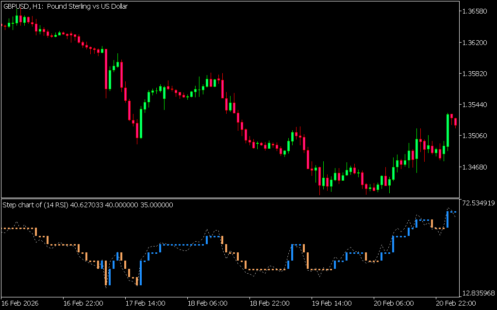 The Step Chart RSI Indicator for MetaTrader 5 (MT5) is an enhanced version of the classic Relative Strength Index (RSI). By adding a step filter and a moving average line, it eliminates many false signals that traders often encounter when using RSI alone. This makes it a more reliable tool for identifying overbought and oversold conditions in the Forex market.