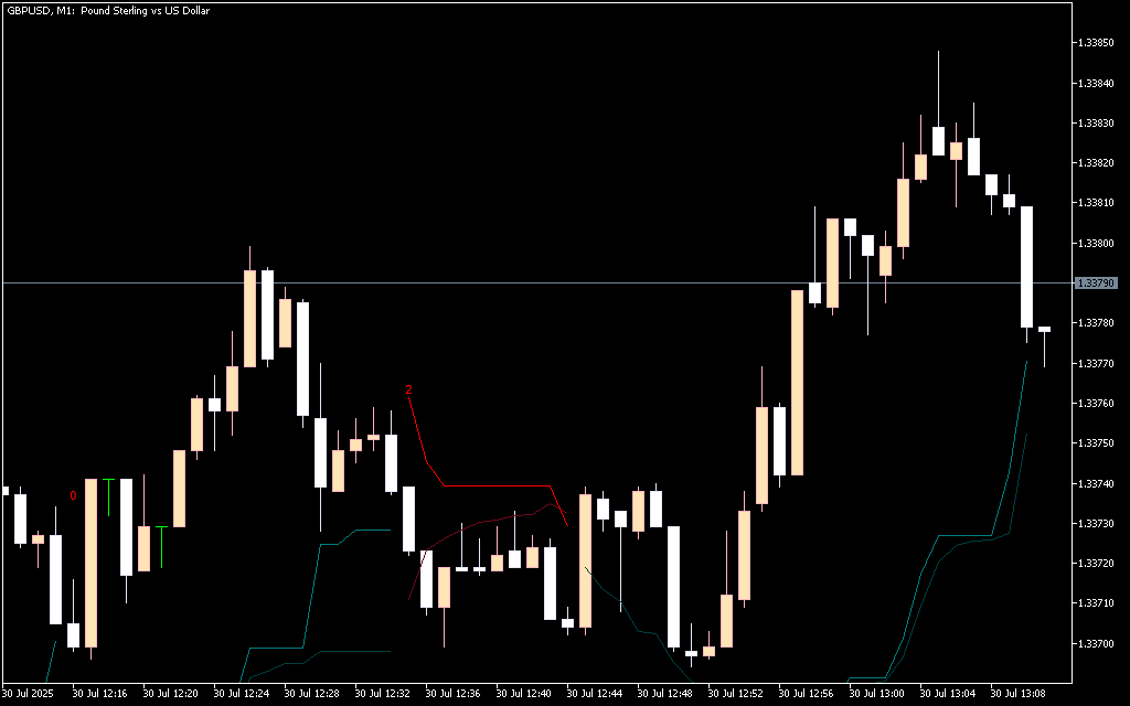 - Trend change markers: When the trend flips, a number appears on the chart indicating the cluster iteration responsible for the shift.