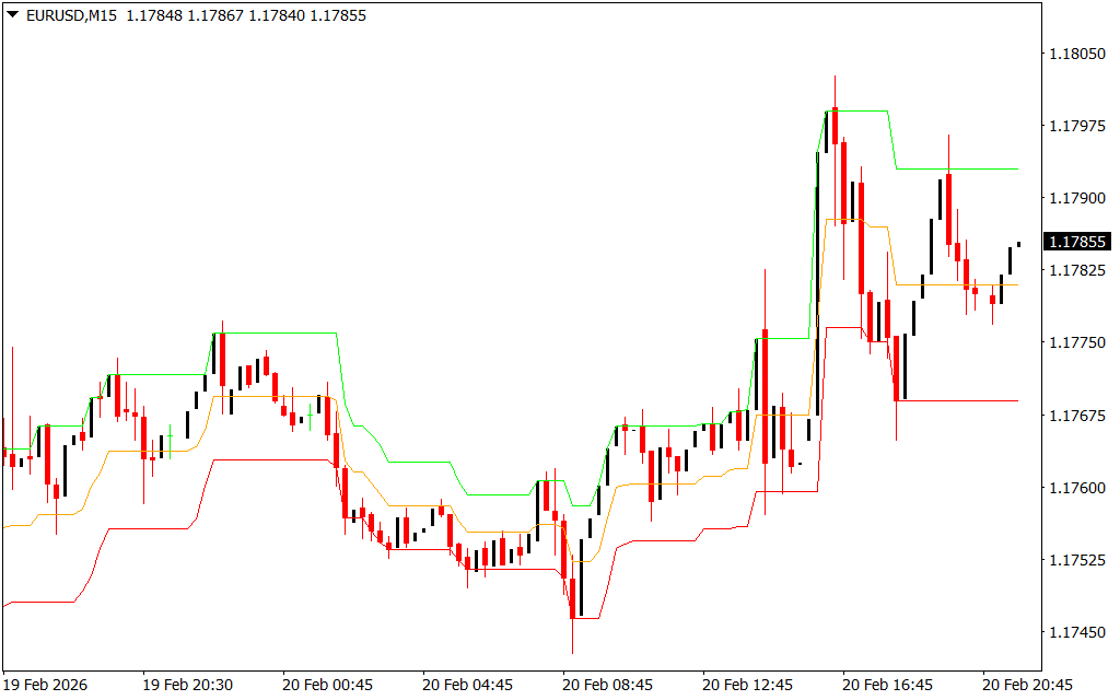 - Upper Channel Band – Expands above price based on volatility; a close above indicates strong bullish momentum