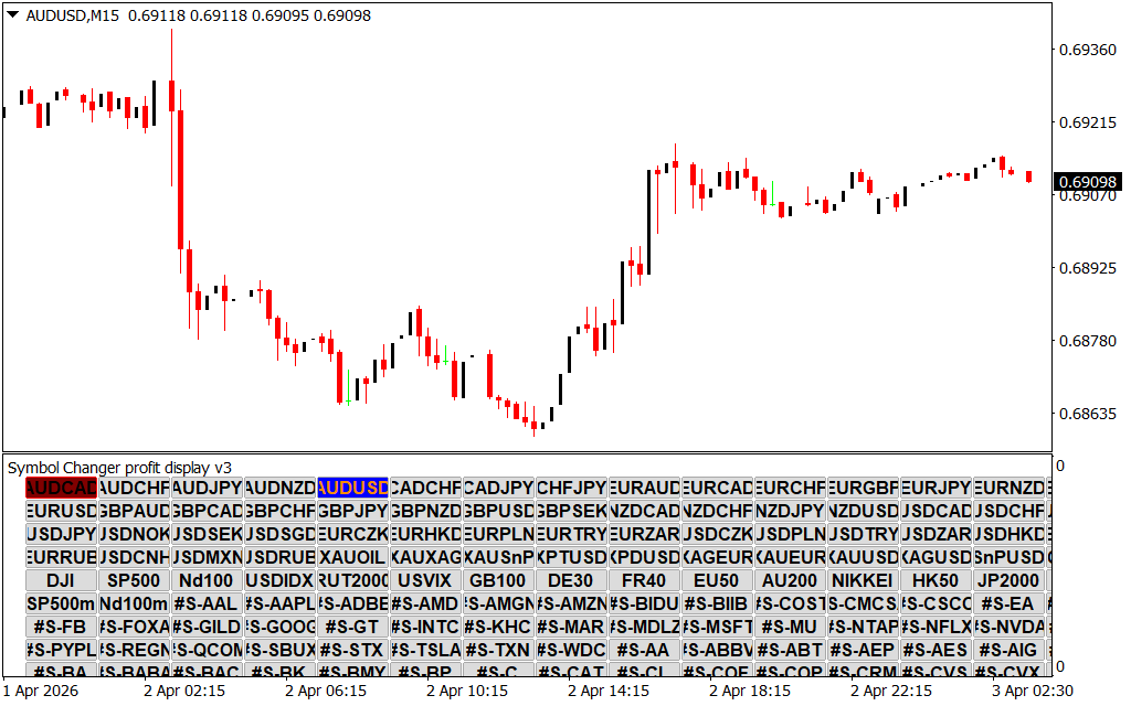 The Symbol Changer Profit Display V3 Indicator for MetaTrader 4 (MT4) is designed for traders who need a quick and efficient way to switch between currency pairs and timeframes while monitoring real-time trading performance. This versatile tool displays essential trading information directly on the chart, creating a seamless and productive trading experience. Perfect for active traders and scalpers, it ensures that all necessary data is available at a glance.