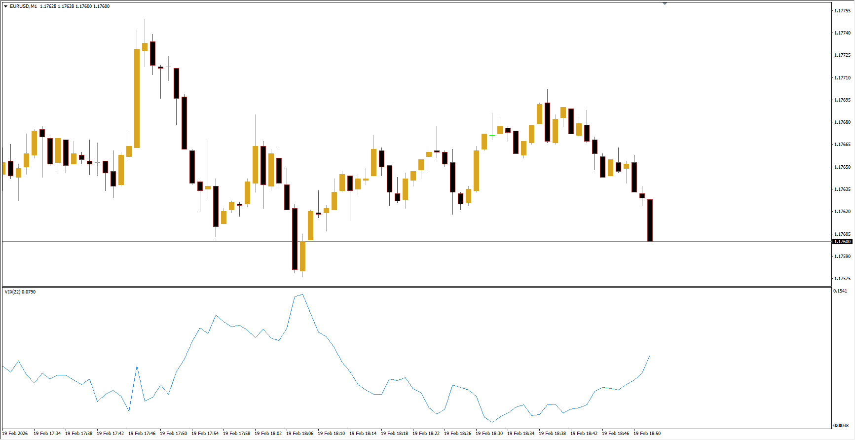 - Synthetic VIX value=Highest(Close, 22) – LowHighest(Close, 22)\text{Synthetic VIX value} = \frac{\text{Highest(Close, 22) – Low}}{\text{Highest(Close, 22)}}Synthetic VIX value=Highest(Close, 22)Highest(Close, 22) – Low