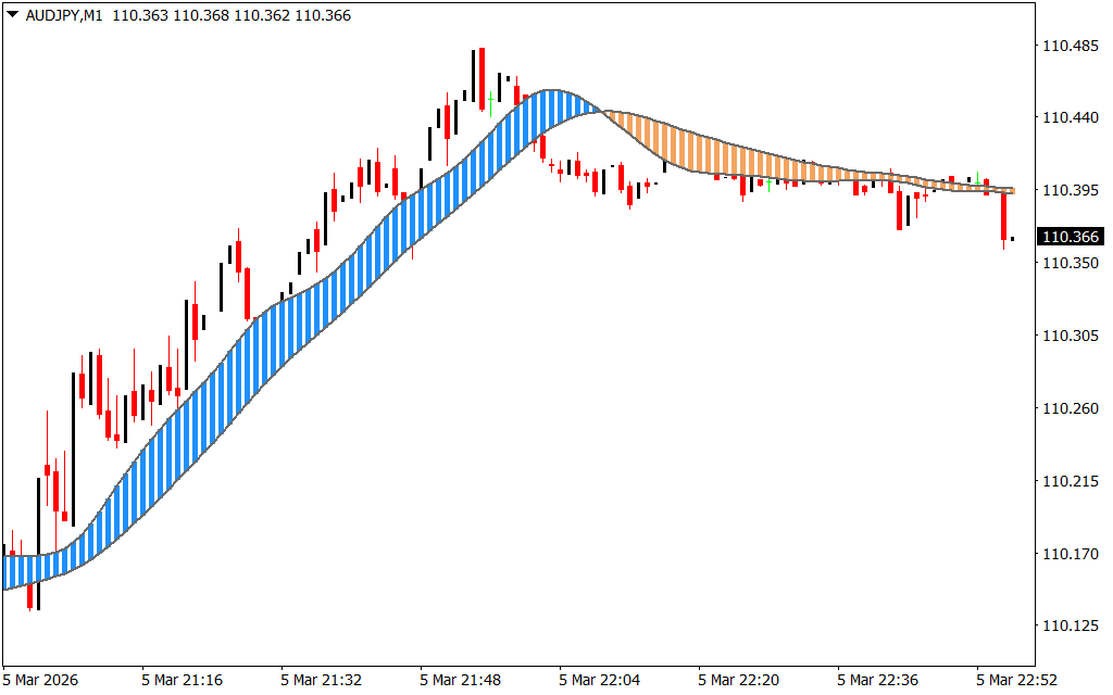 The indicator appears directly on the chart as a ribbon that follows the price movement.