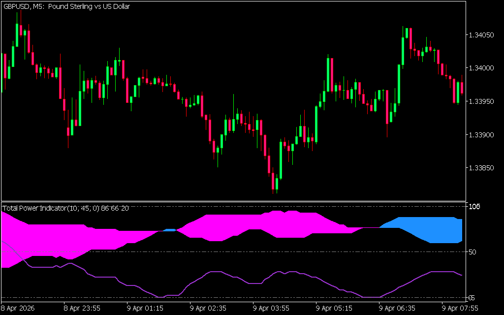 The Total Power Indicator for MT5 is a reliable trading tool designed to evaluate bull and bear strength in the forex market. By combining a 10-day EMA with a technical component that analyzes past and current market conditions, this indicator helps traders determine market dominance and anticipate potential trend reversals. Whether you’re a beginner or an experienced trader, the Total Power Indicator provides valuable insights for Scalping, day trading, intraday, and swing trading.