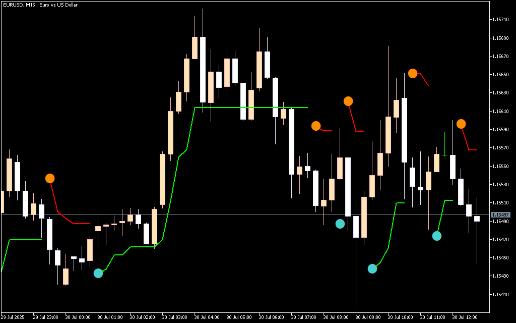 A consistent pattern of colored dots confirms the strength of a trend. This visual guidance allows traders to quickly interpret market direction without complex calculations.