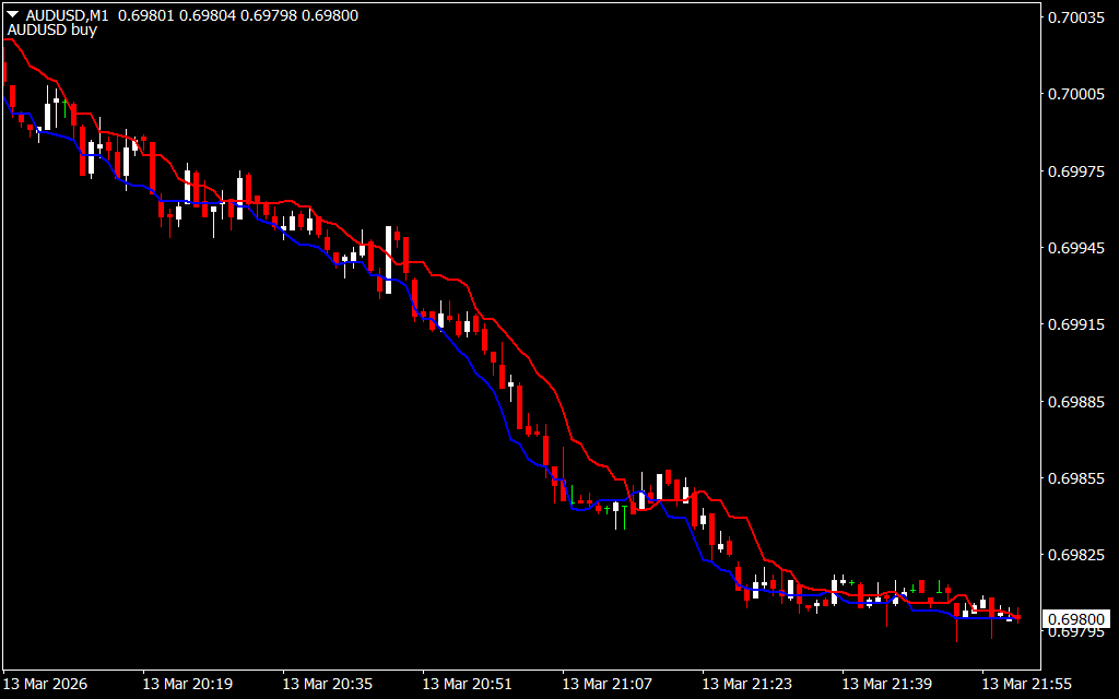 - Blue line → Indicates bullish trend and buy signals