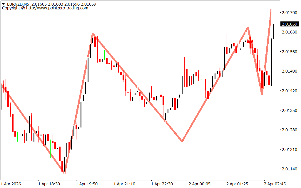 The indicator draws clear visual markers on the chart, including arrows that suggest the potential direction of the next price movement, making it simple to spot trading opportunities.