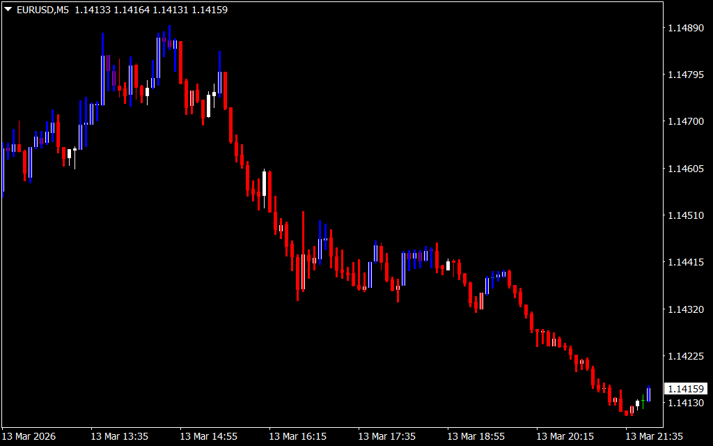 However, a key rule when trading with this indicator is to wait for consecutive bars before entering a trade. Since the indicator skips weak candles, neutral candles may appear within a trend.