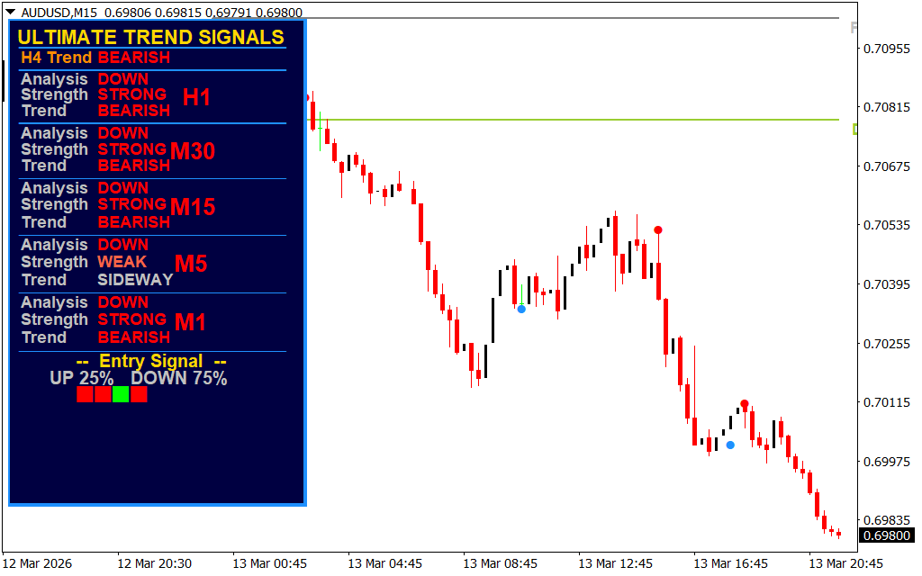 The Ultimate Trend Signals V2 indicator for MT4 provides accurate bullish and bearish arrow signals combined with trend strength and direction, making it suitable for manual and automated trading. By following these signals, traders can make more confident entry and exit decisions.