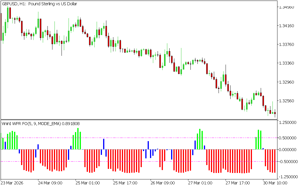 The Vinini WPR Indicator for MT5 is an oscillator-based technical tool built on Williams’ Percentage Range (WPR). It helps traders identify market direction by measuring overbought and oversold conditions with high sensitivity to price movements.