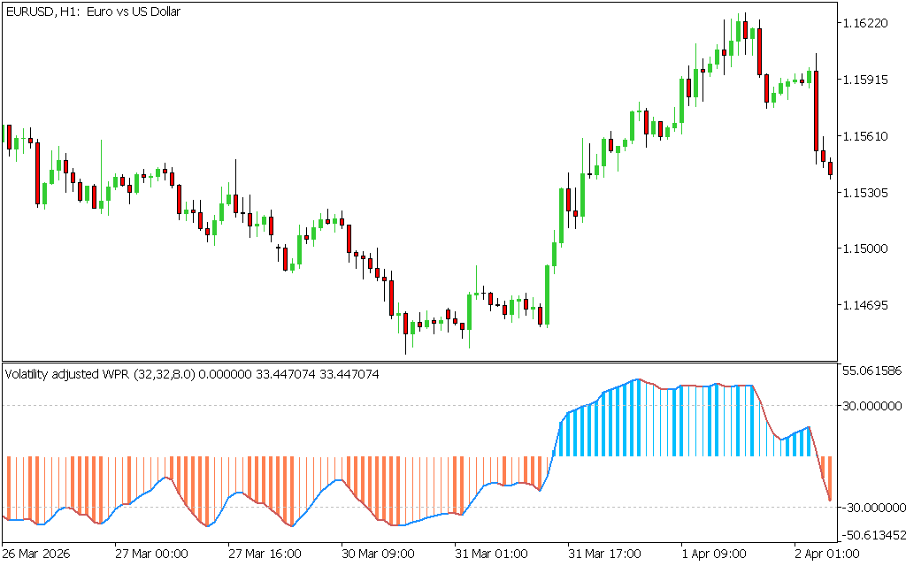 The Volatility Adjusted WPR Indicator for MT5 is a refined momentum tool that enhances the traditional Williams %R indicator. Its smoother signals and clear trend identification make it a valuable addition to any trading strategy.