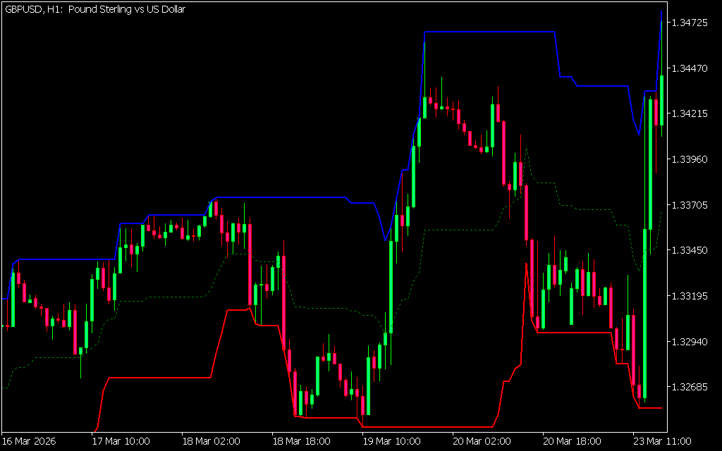 The bands automatically adjust based on market volatility and recent price highs and lows.